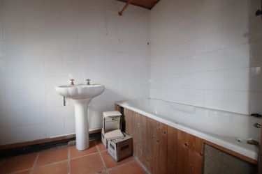 Bathroom: 8’3” x 5’7” – with three piece bathroom suite in white comprising of a w.c, pedestal wash hand basin, ceramic bath with wooden panelling with provisioning for electric shower over, fully tiled, wooden ceiling with inset lights.